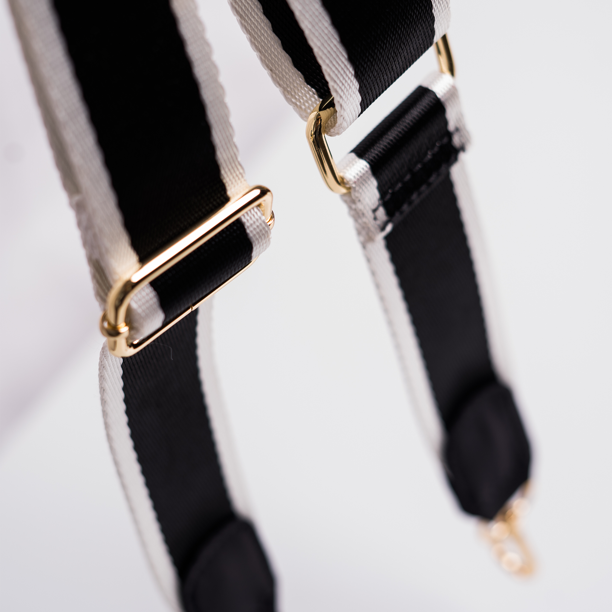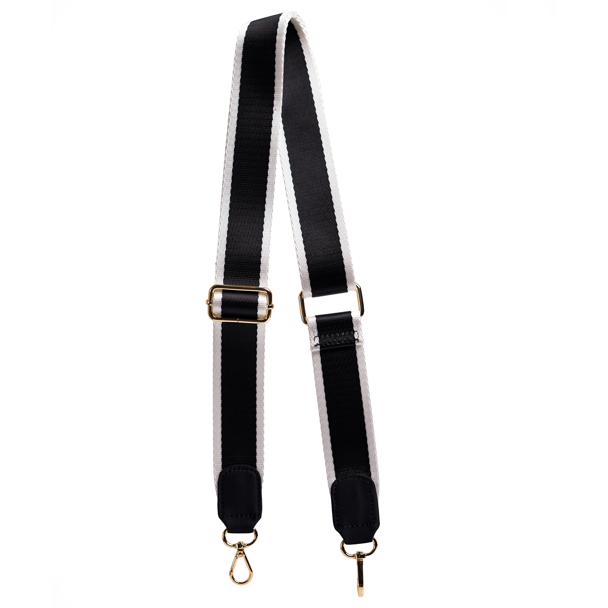 WEBBING CROSS BODY STRAP - BLACK AND WHITE WITH GOLD