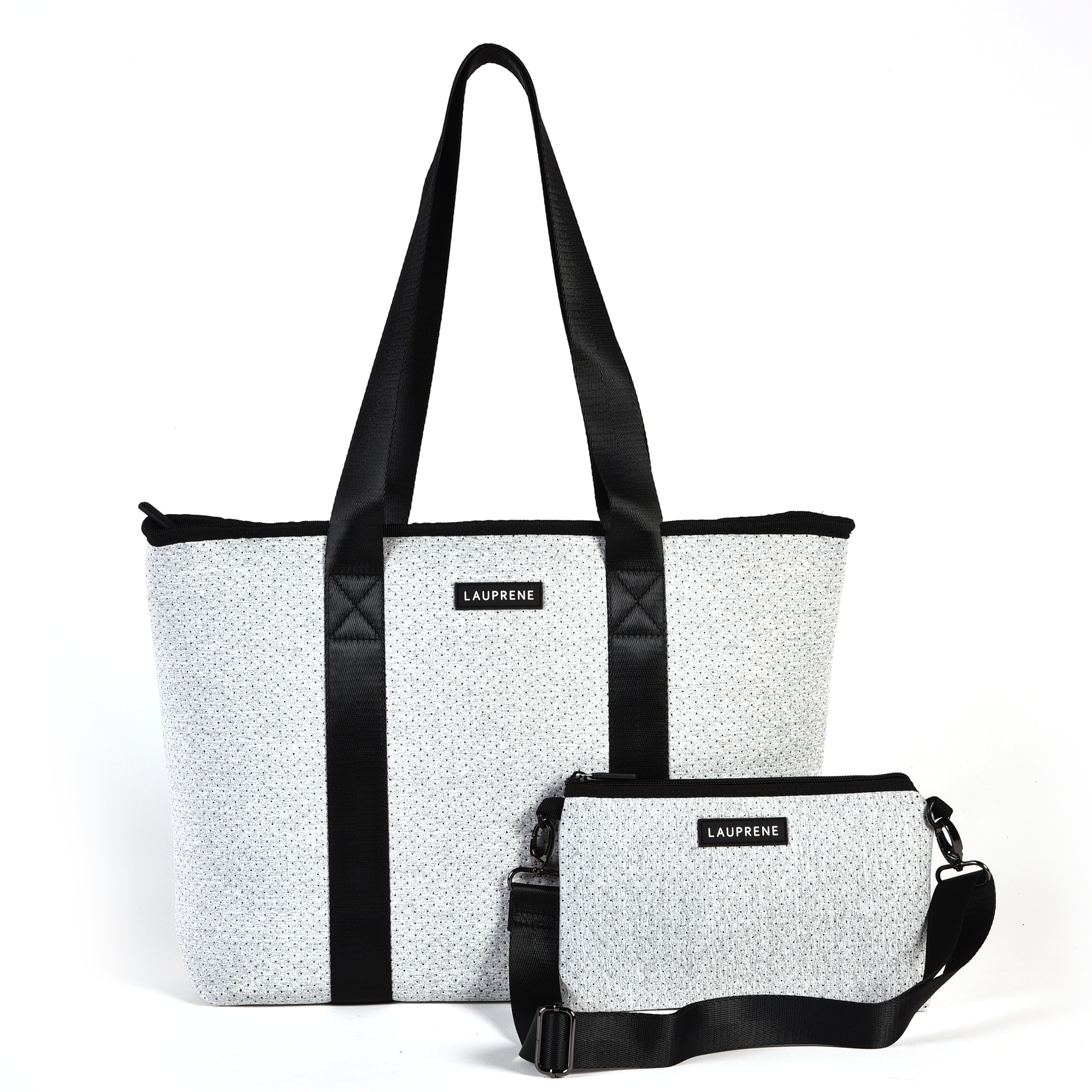Functional and fashion-savvy the light grey Urban neoprene tote is loved by ladies country-wide. Our favorite part?  The on-trend cross-body bag included has an adjustable webbing strap and will be your strolling companion for life.