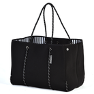 Our Neoprene tote is large enough for all your seaside essentials. No need to panic if you spill your ice-cream or the tide gets a little too close. The light weight, perforated neoprene is machine-washable and water resistant.
