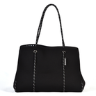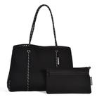 The black classic tote is perfect for a trip to the market, gym, a busy day at the office, or a trip to the beach. The water-resistant neoprene will help keep things dry, while the lightweight and soft texture will make it easy to carry. Your items are safe with a magnetic closure in the middle and press studs on the side.
