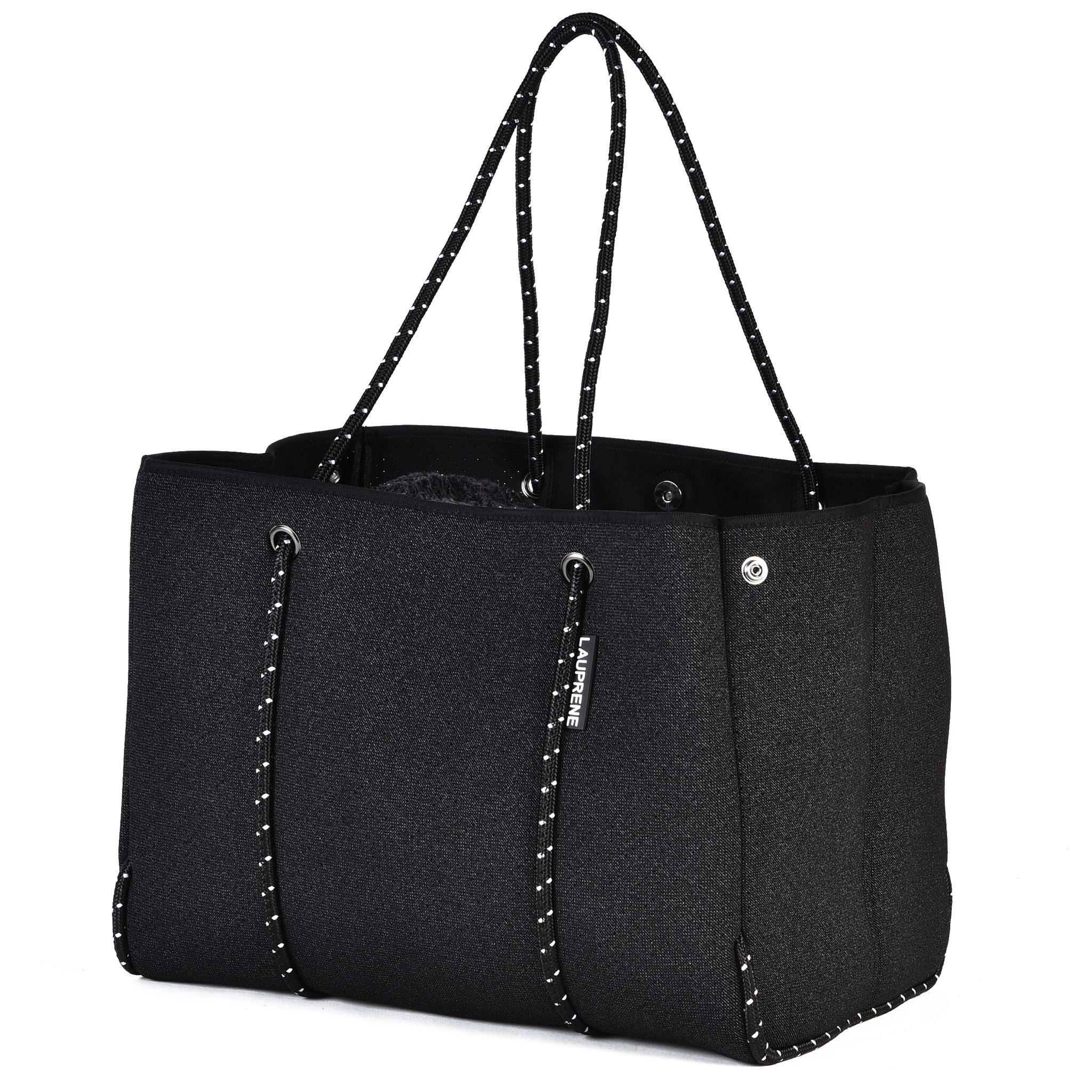 Our Neoprene tote is large enough for all your seaside essentials. No need to panic if you spill your ice-cream or the tide gets a little too close. The light weight, perforated neoprene is machine-washable and water resistant.