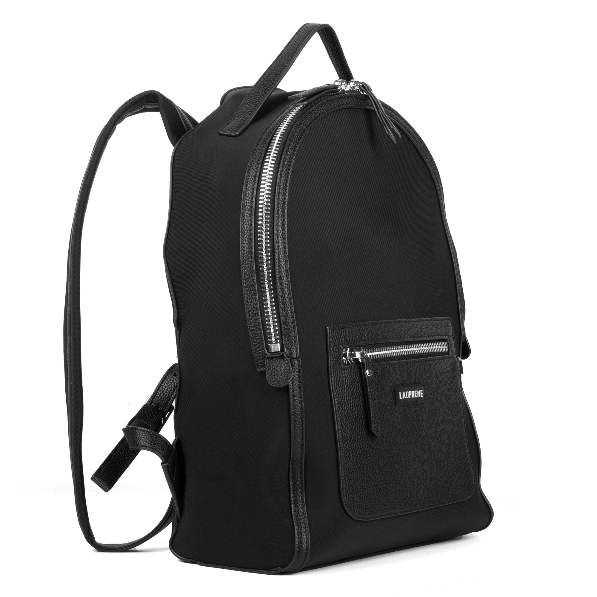 A sophisticated backpack crafted from eco-neoprene and a combination of vegan leather. Boasting multiple pockets both inside and out, including a slip pocket for a 15 inch lapstop. Whether you need a back pack for a business trip or are a digital nomad traveling the world, this will keep your laptop and valuables well secured all while looking stylish.